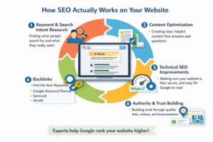 Once you understand crawling, indexing, and ranking, SEO becomes very practical. Here’s what we actively do on a website to help search engines rank it higher: